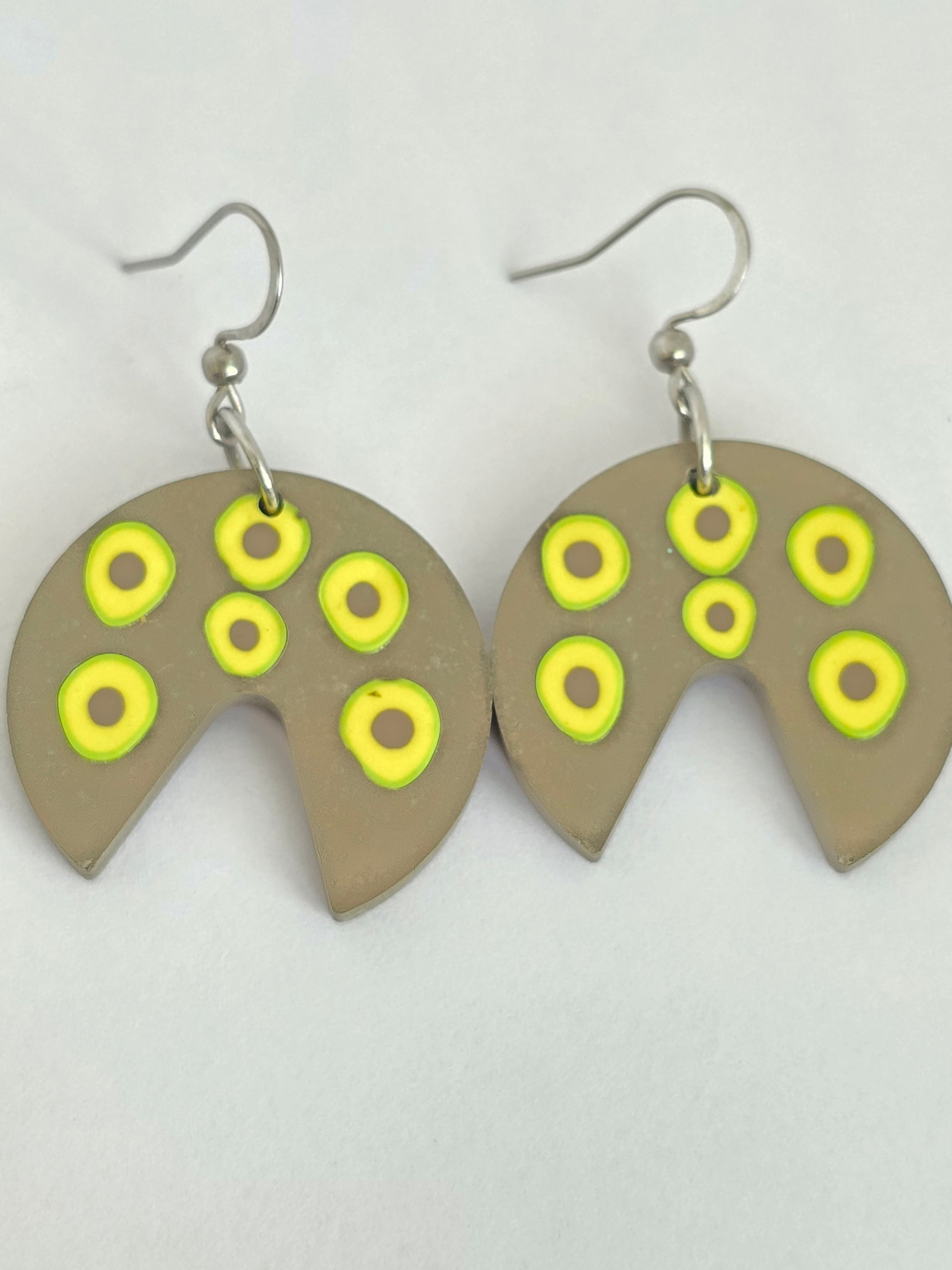 Estas pantallas están hechas en cemento natural, sin pintar, y tienen mini aguacates incrustados que le dan un detalle divertido y único. La textura del cemento crudo junto al verde del aguacate crea un contraste hermoso y moderno. Livianas, artesanales y con ganchos en acero inoxidable, perfectas para pieles sensibles y para quienes aman lo simple con un twist creativo.