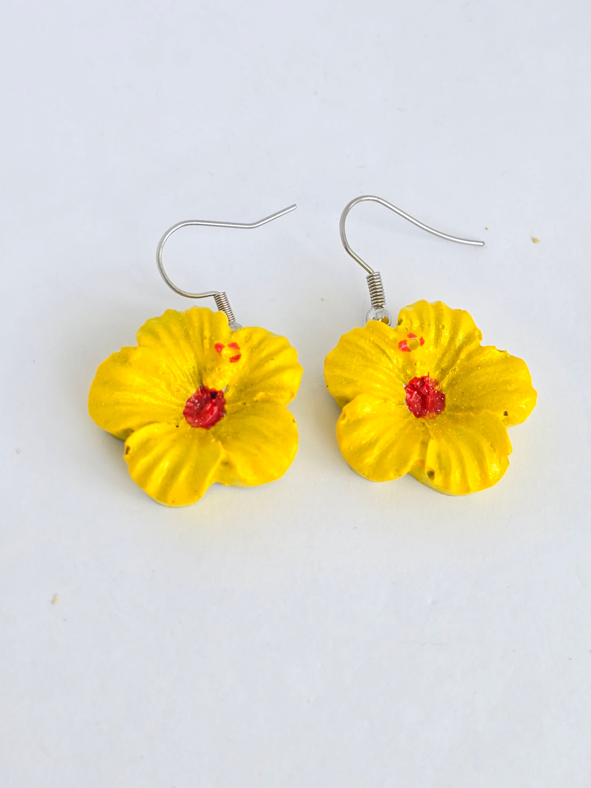Llenas de luz y alegría, estas mini amapolas están pintadas en un amarillo vibrante que ilumina cualquier look. Su forma delicada hecha a mano en cemento resalta con este color lleno de energía positiva. Livianas y cómodas, llevan ganchos en acero inoxidable ideales para el uso diario con un toque artesanal y soleado.