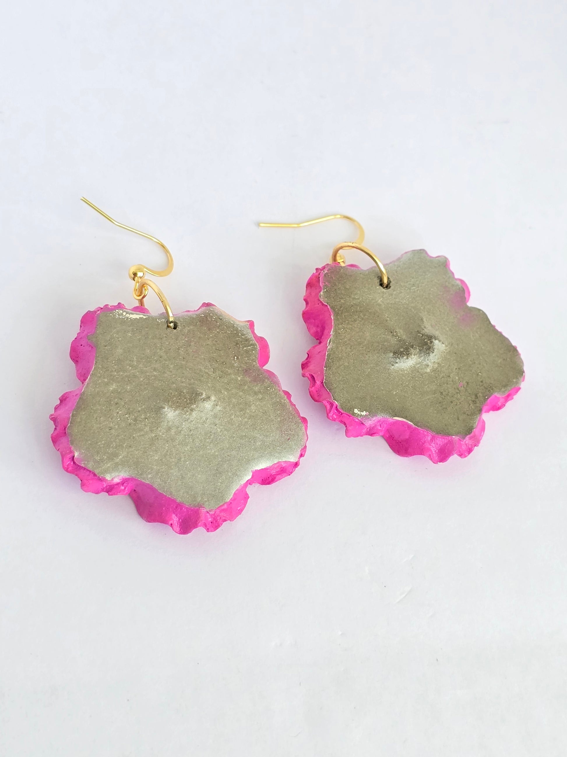 Dulces y delicadas, estas grande amapolas están pintadas a mano en un encantador tono rosa que transmite ternura y feminidad. Hechas en cemento, cada flor refleja el detalle del trabajo artesanal. Montadas en ganchos de acero inoxidable, son perfectas para usar todos los días con comodidad y un toque romántico.