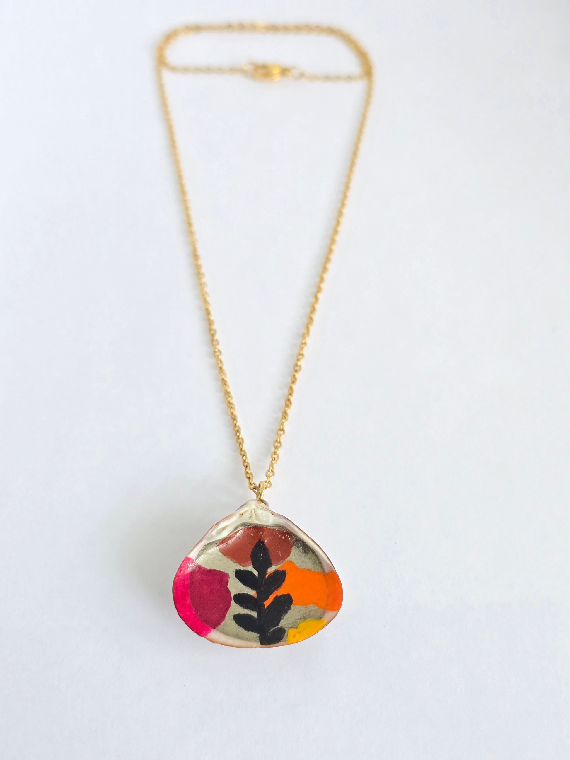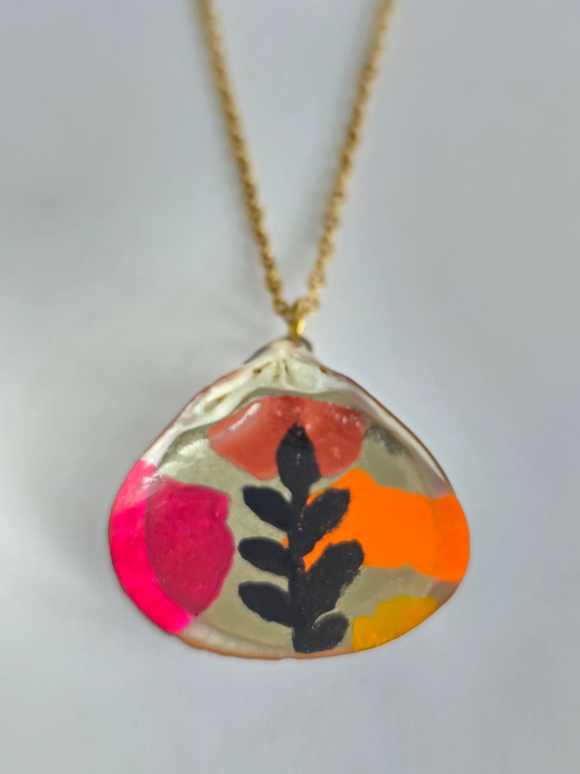 Caracol recolectado en la playa, relleno de cemento y decorado a mano con un diseño minimalista sobre su superficie. Cada pieza es única y conserva la forma natural del mar. Cadena en acero inoxidable, ideal para llevar un pedacito del océano contigo, todos los días.