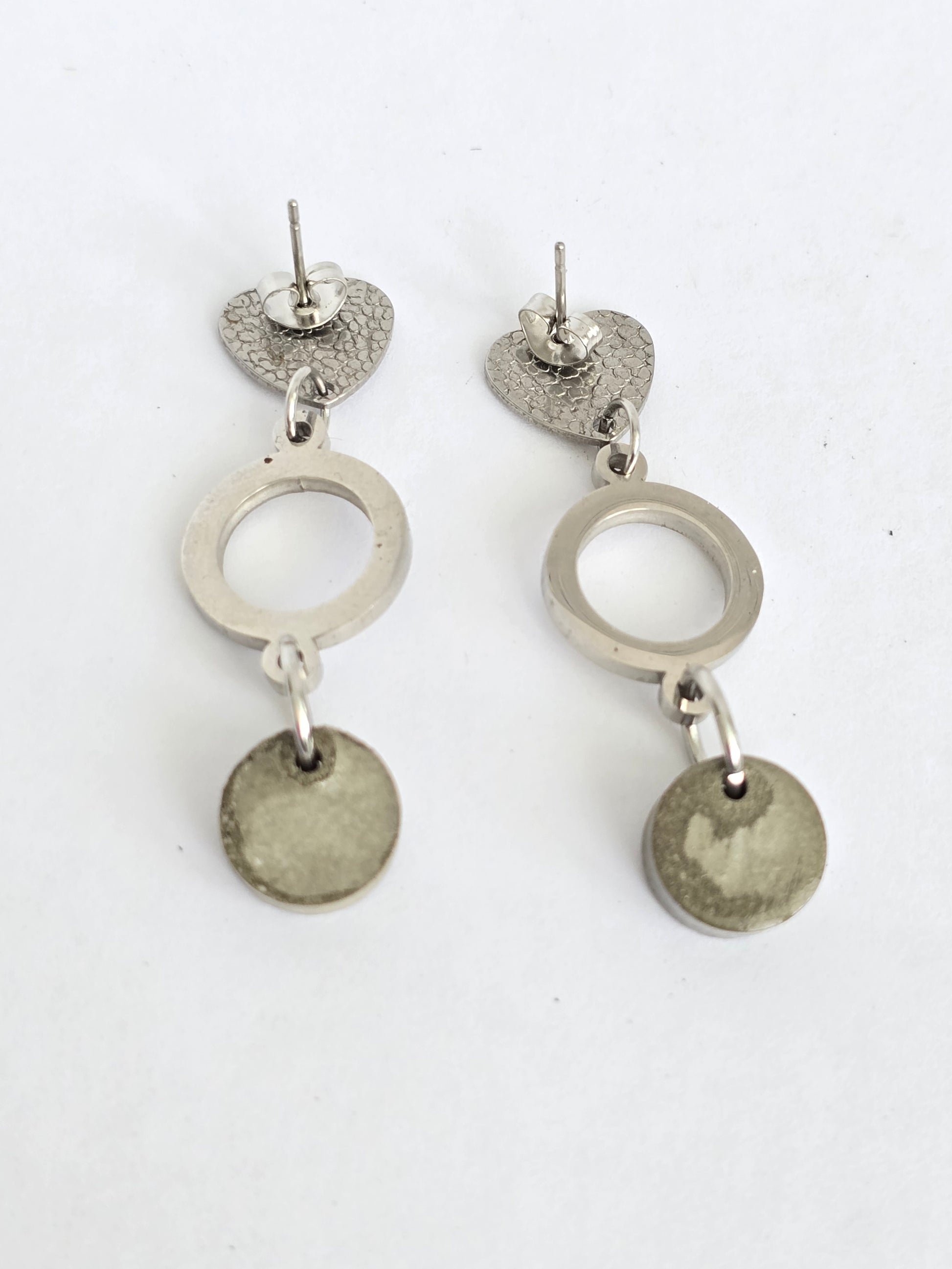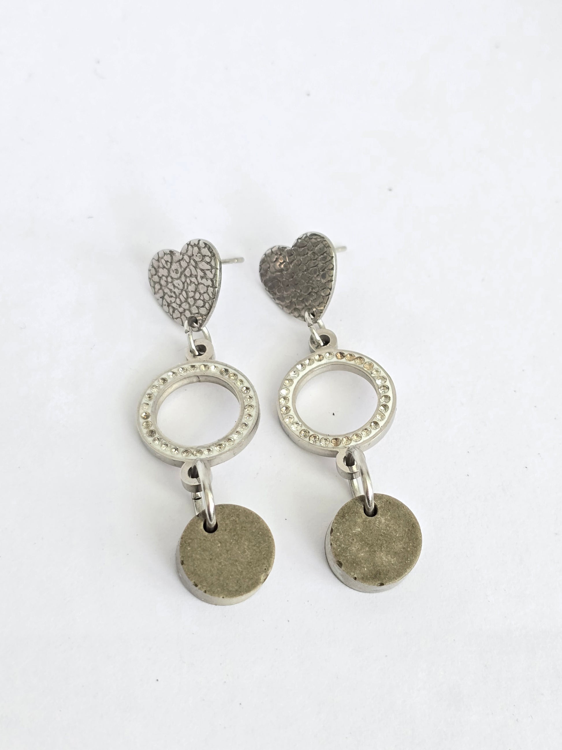 Sutiles y elegantes, estas pantallas destacan por su conector circular adornado con Rain Stones, que aporta un brillo delicado y moderno. De él cuelga un mini círculo de cemento al natural, sin pintar, resaltando la belleza cruda y artesanal del material. Un balance perfecto entre brillo y textura. Ligeras, únicas y montadas en ganchos de acero inoxidable, ideales para uso diario con un toque sofisticado y original.