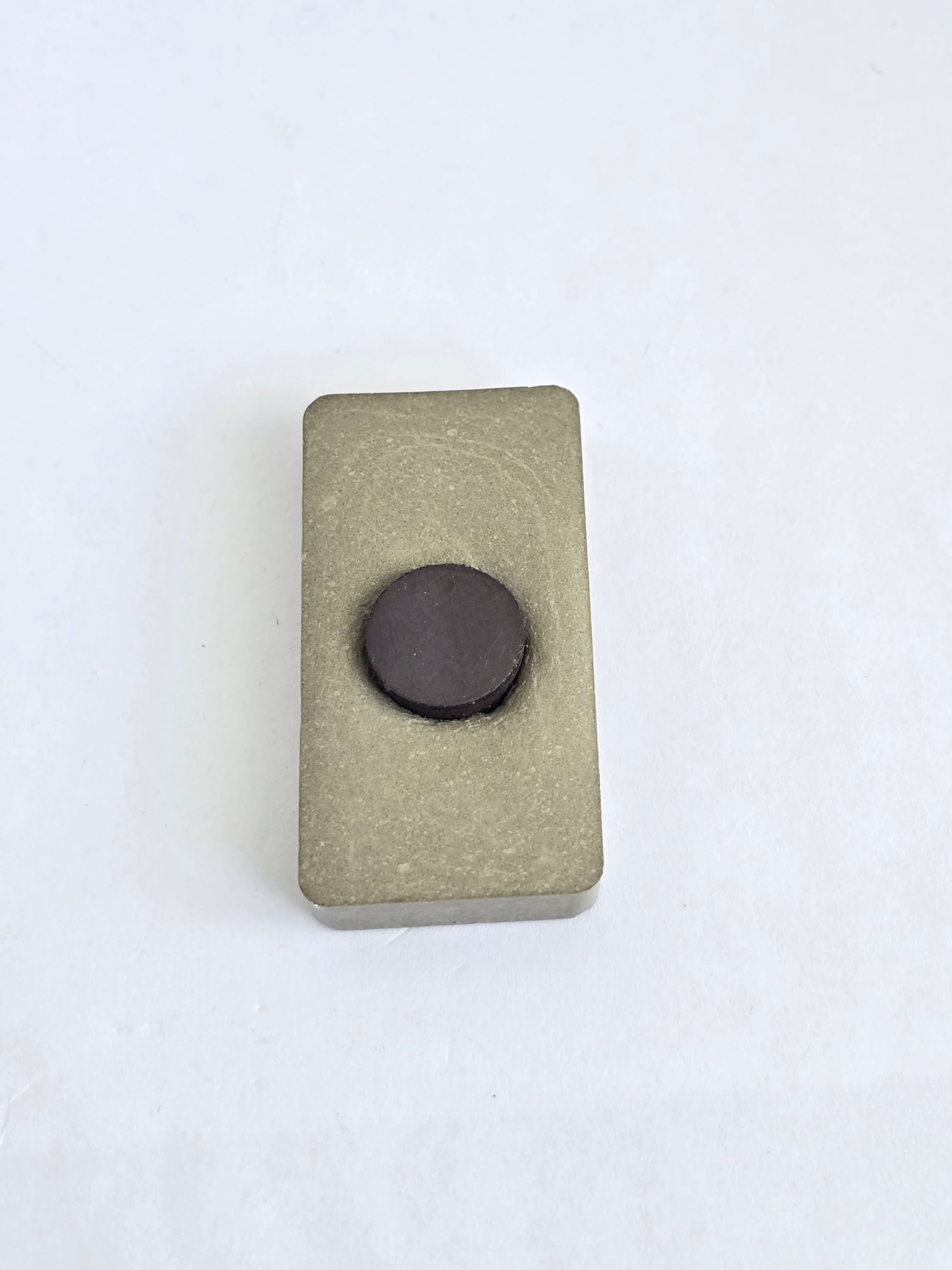 Imán en forma de ficha de dominó 1/2 hecho en cemento, con la bandera de Puerto Rico pintada a mano sobre uno de los lados. Una pieza que combina juego, arte y patriotismo en un formato compacto y lleno de carácter.
