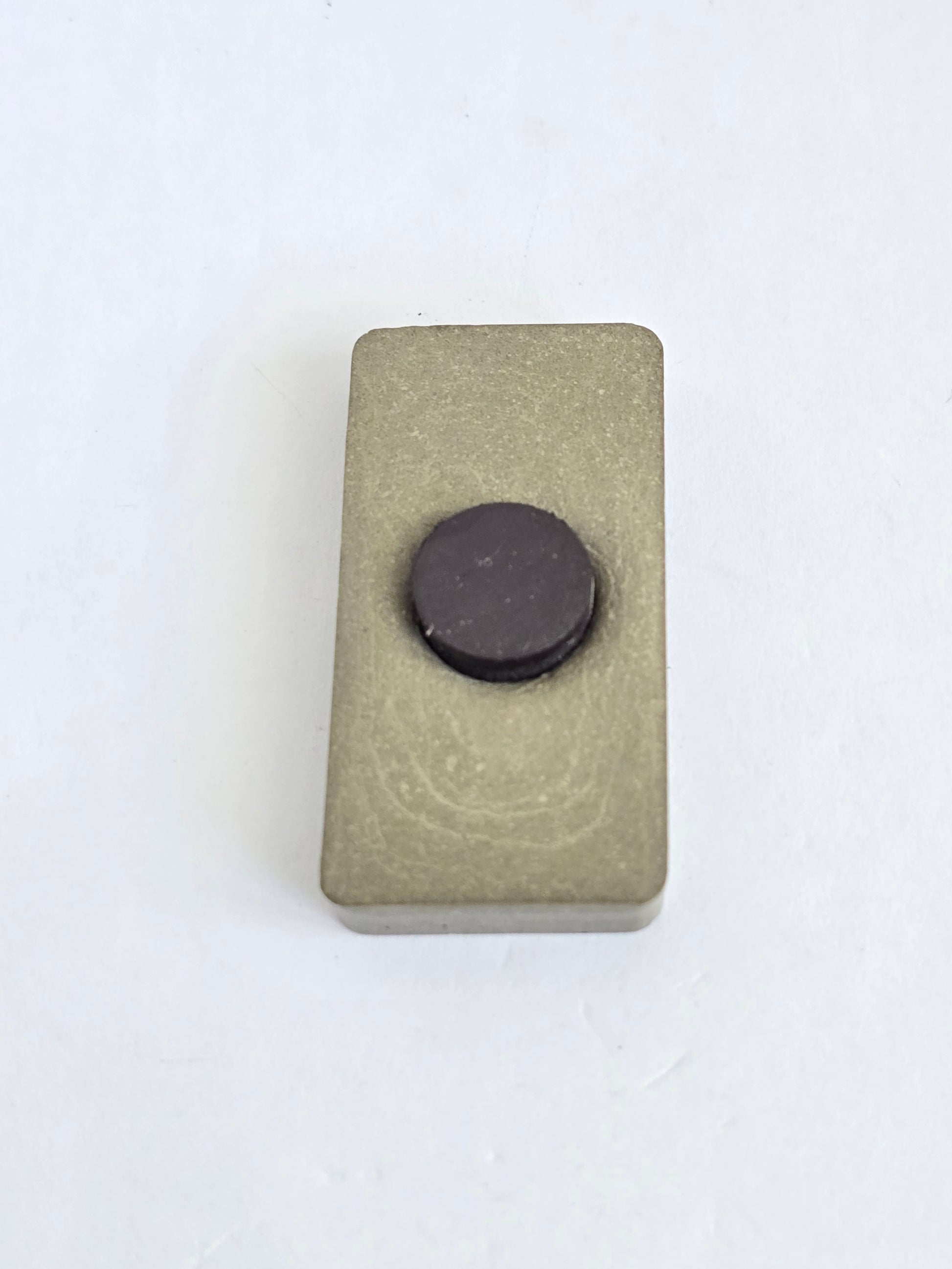 Imán en forma de ficha de dominó 5/3 hecho en cemento, con la bandera de Puerto Rico pintada a mano sobre uno de los lados. Una pieza que combina juego, arte y patriotismo en un formato compacto y lleno de carácter.