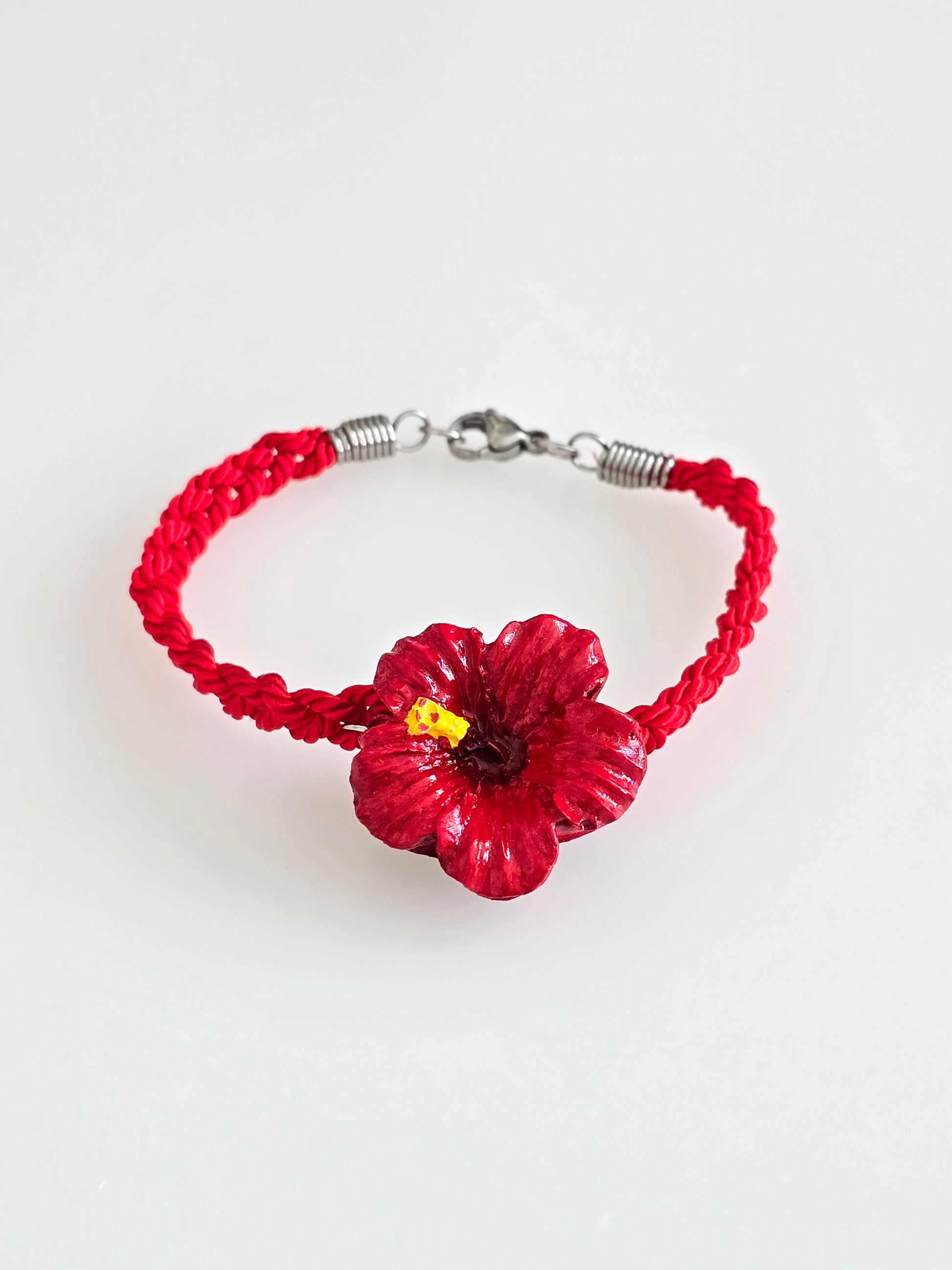 Una pieza vibrante que refleja la pasión y energía del Caribe. Su amapola roja, moldeada y pintada a mano en cemento, se complementa con una trenza roja que resalta su encanto artesanal. Ligera, duradera y llena de color, es el accesorio perfecto para quienes aman destacar con estilo tropical. Material: Cemento, hilo trenzado y herrajes plateados acero inoxidable.
