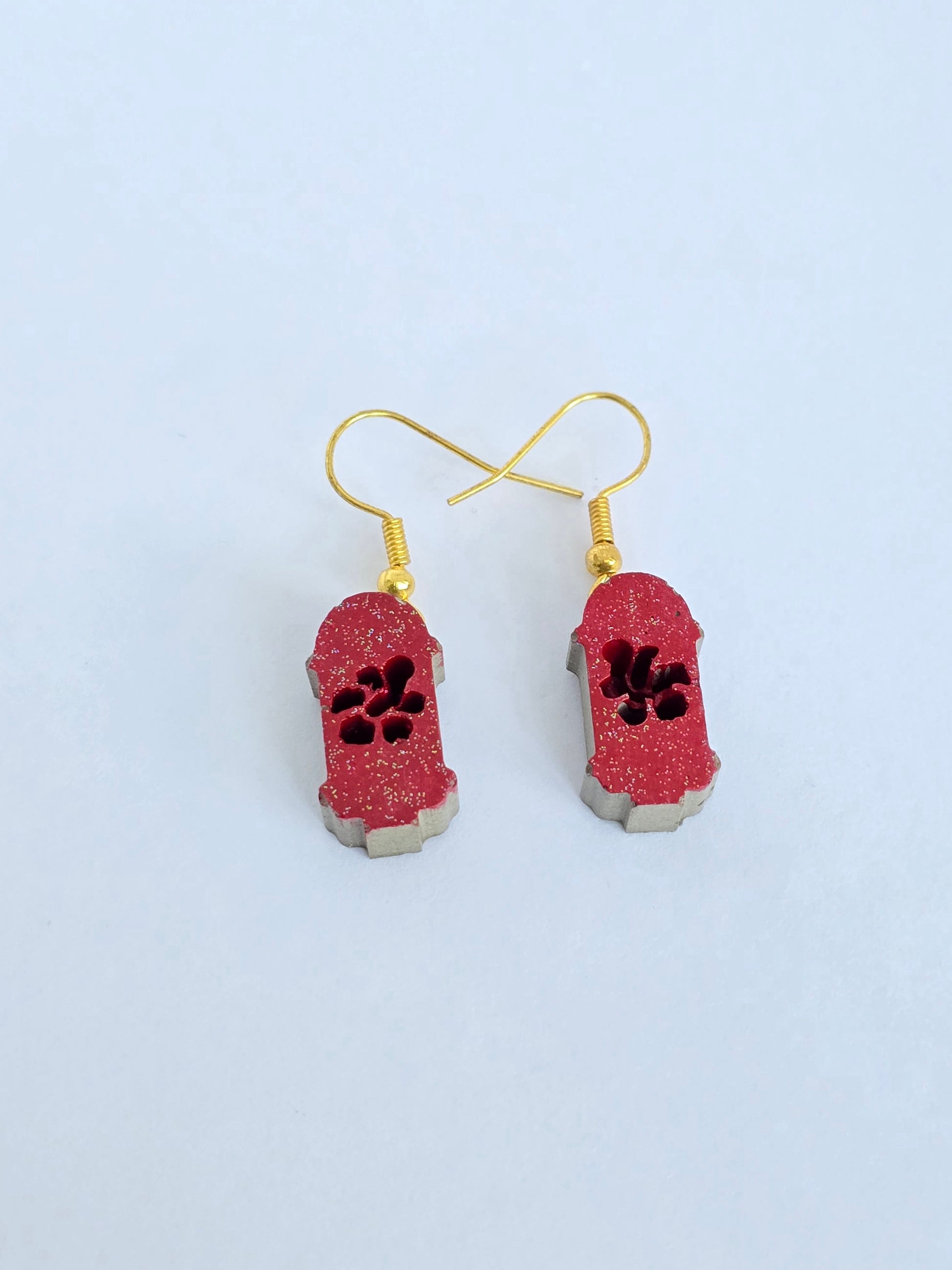 Estas pantallas colgantes presentan una garita hecha en cemento con una mini amapola incrustada en el centro, representando la fuerza y belleza de Puerto Rico. Cada pieza es pintada a mano con delicadeza, resaltando los detalles que hacen de este diseño uno único y especial. Ligeras, con historia y llenas de orgullo boricua. Ganchos en acero inoxidable, perfectos para pieles sensibles.