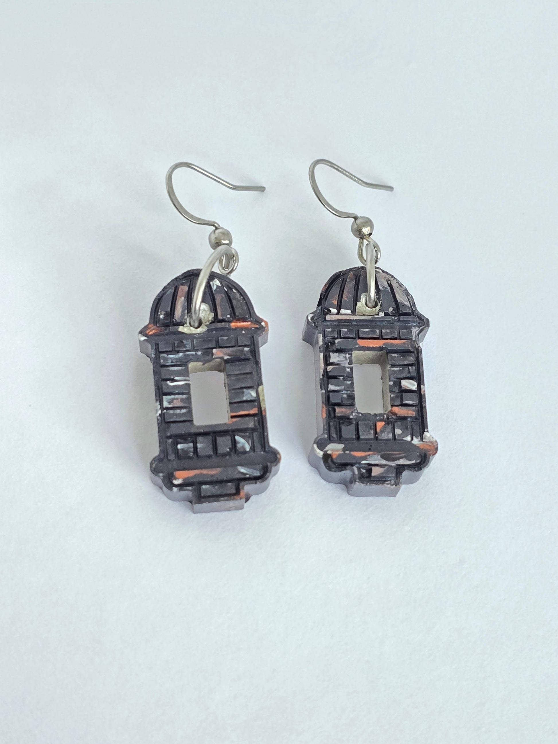 Estas pantallas colgantes presentan una garita pequeña hecha en cemento y pintada a mano con detalle y cariño, inspirada en uno de los íconos más representativos de Puerto Rico. Su tamaño pequeño las hace delicadas pero con un gran significado cultural. Son ligeras, artesanales y están montadas en ganchos de acero inoxidable, ideales para pieles sensibles. Perfectas para llevar tu orgullo boricua con estilo sutil y auténtico.
