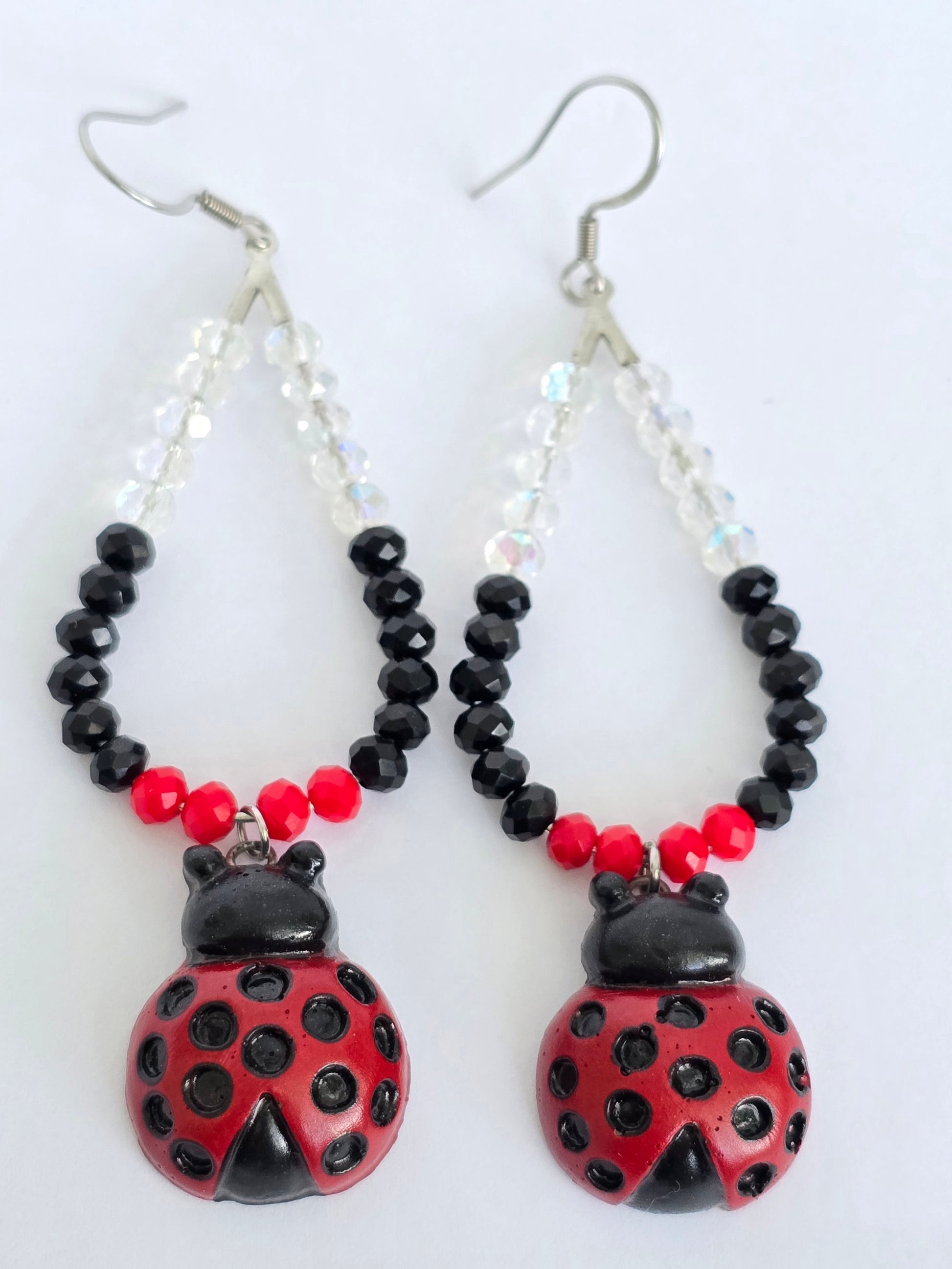 Estas encantadoras pantallas en forma de mariquita están hechas en cemento y pintadas a mano con detalle realista. Están enmarcadas con cristales rondeles que le añaden un toque de brillo delicado y elegante. Ligeras, llamativas y llenas de personalidad, son ideales para quienes aman los accesorios únicos y con un toque de fantasía. Ganchos en acero inoxidable, perfectos para pieles sensibles.