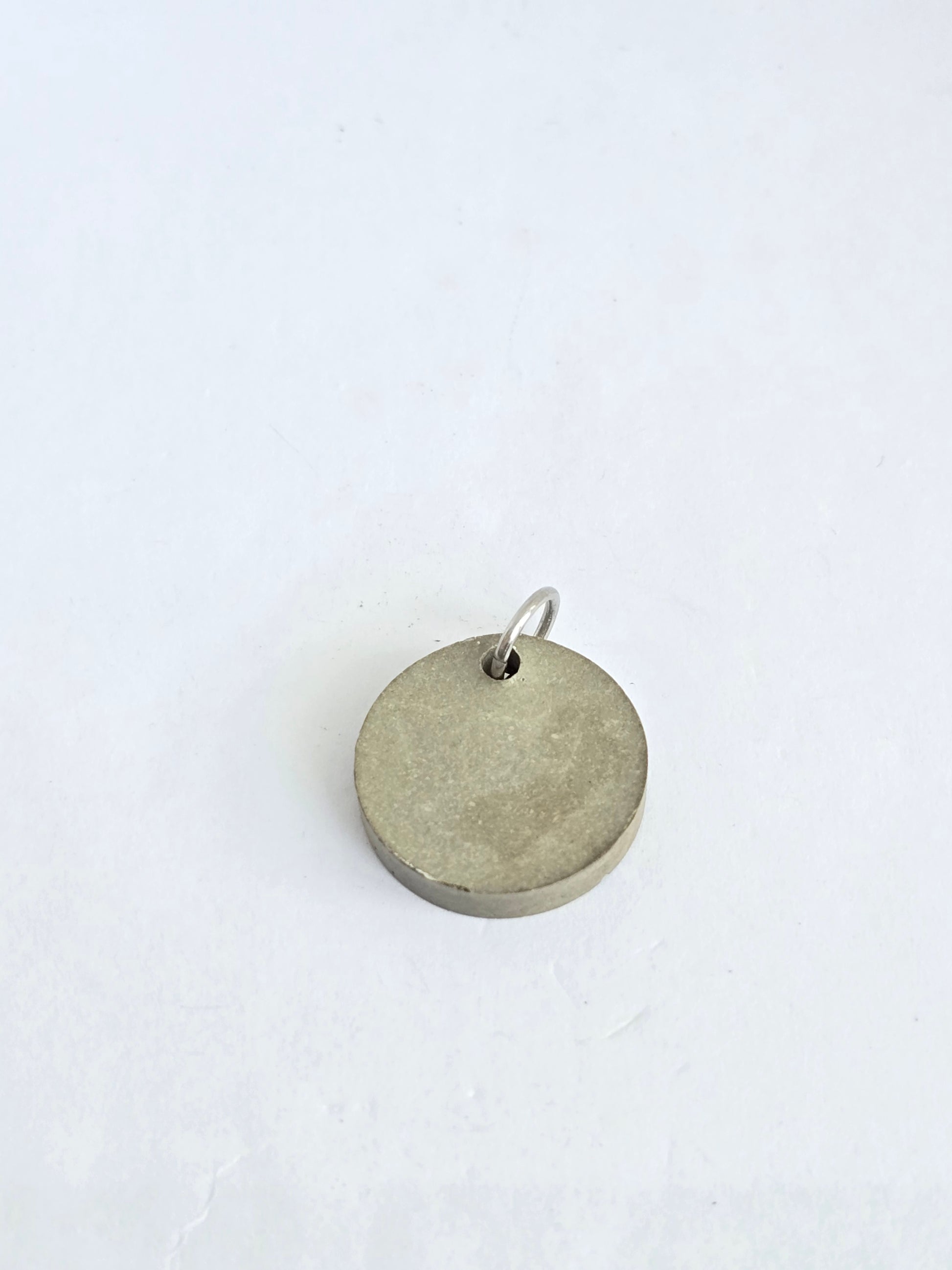 Charm del signo Libra, moldeado en cemento y pintado a mano en blanco. Un diseño sutil y equilibrado, ideal para llevar contigo en collares, pulseras o llaveros como símbolo de armonía y estilo personal.