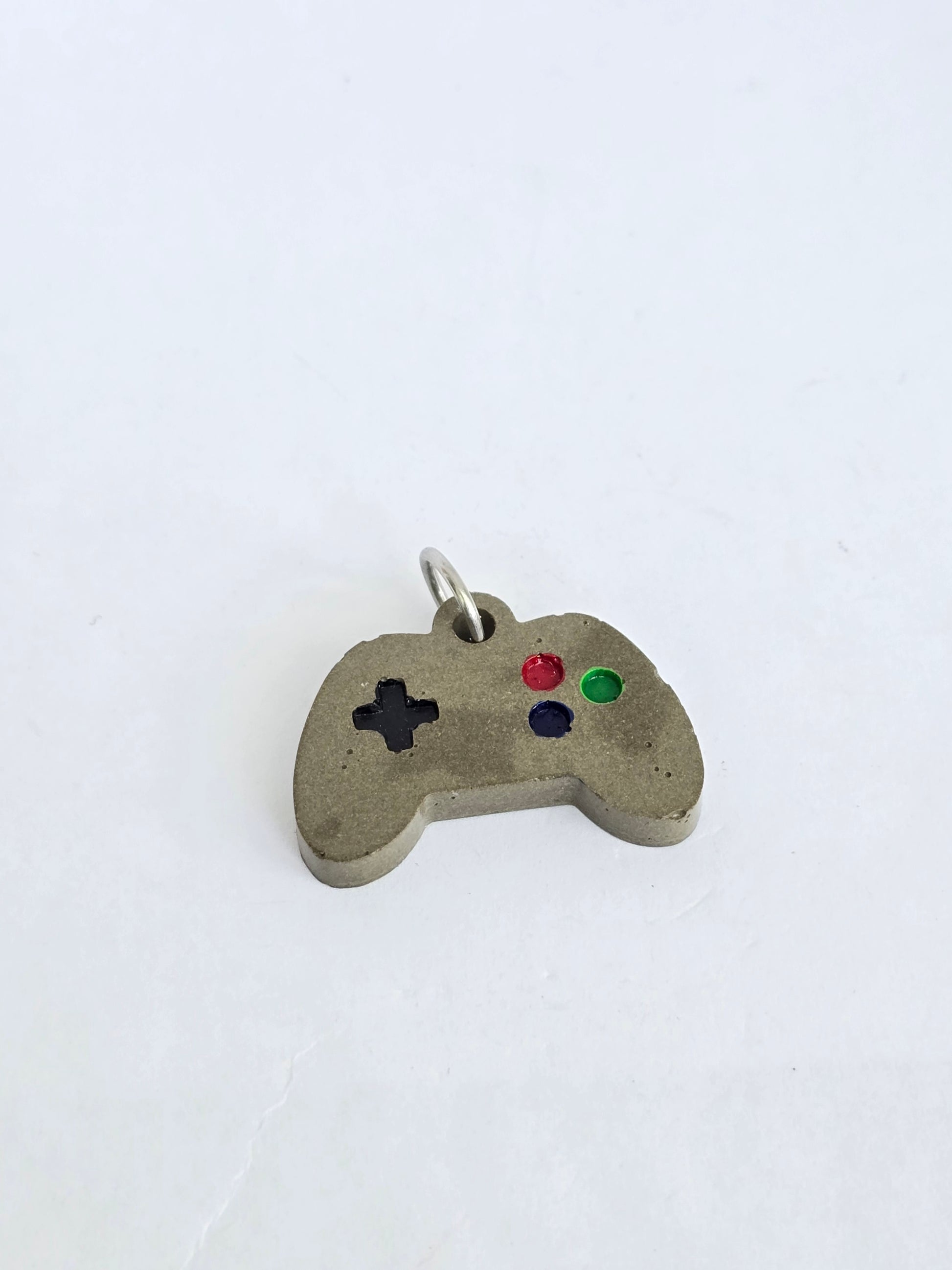 Charm en forma de control clásico de Nintendo, hecho en cemento con botones pintados en varios colores. Un diseño lleno de nostalgia y color, ideal para añadir a tus accesorios favoritos como collares, pulseras o llaveros.