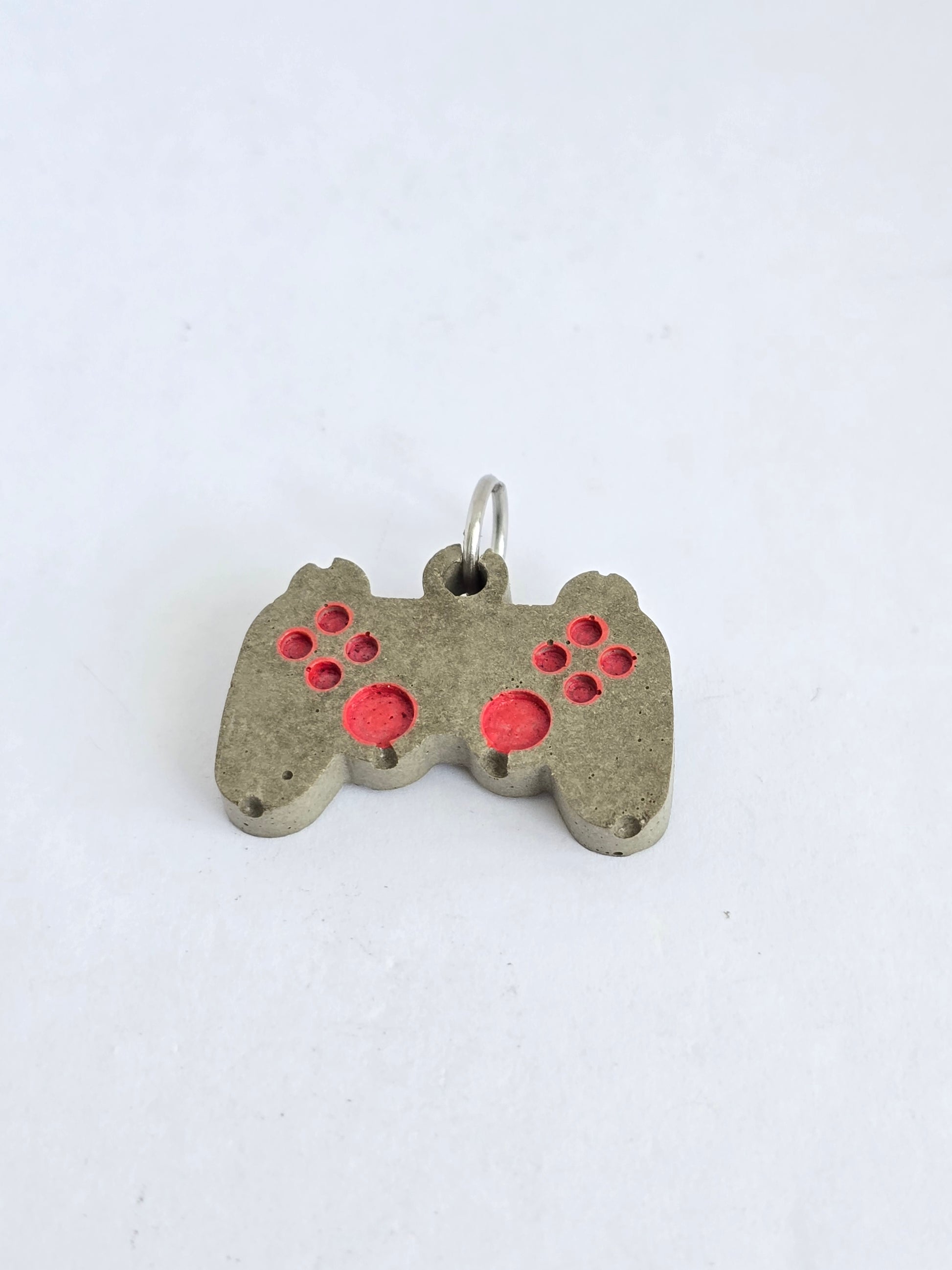 Mini control de Playstation moldeado en cemento con los botones pintados en rosa. Un diseño divertido y gamer, ideal para usar en collares, llaveros o pulseras. Ligero, resistente y con mucho estilo.