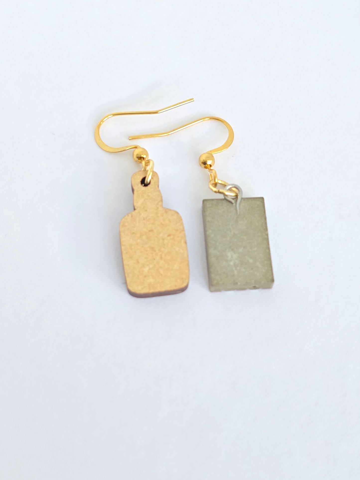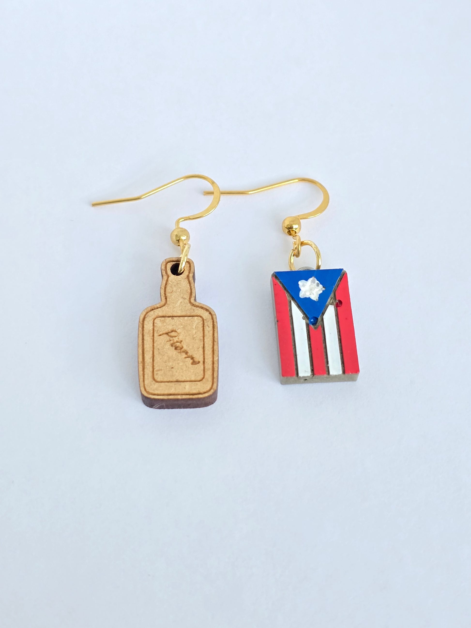 Estas pantallas colgantes desiguales combinan dos íconos puertorriqueños: en un lado, una botella de pitorro en miniatura hecha con detalles auténticos; en el otro, la bandera de Puerto Rico hecha en cemento y pintada a mano con amor patrio. Un diseño artesanal, único y lleno de historia. Ligeras y con ganchos en acero inoxidable, ideales para pieles sensibles y para quienes viven y celebran su cultura con estilo.