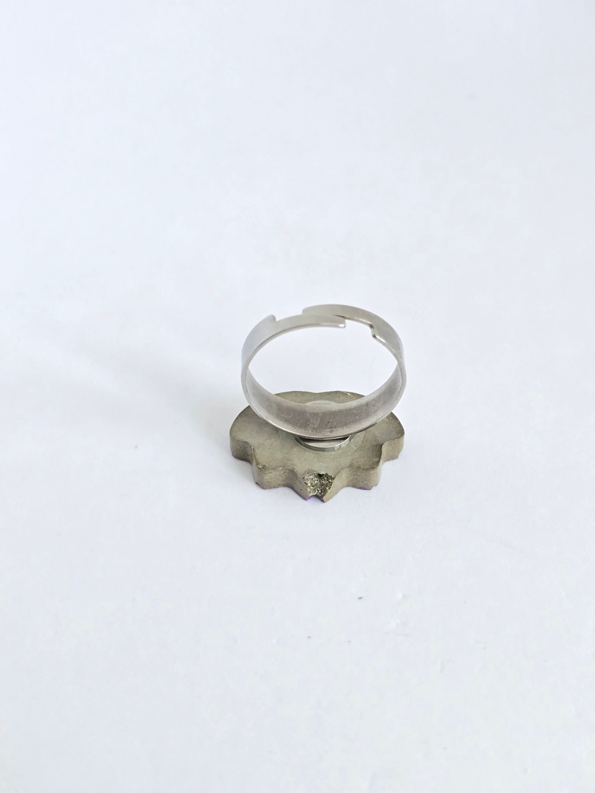 Sortija ajustable en acero inoxidable, con una flor de loto en cemento pintada a mano en tono violeta. Un diseño que representa paz, crecimiento y belleza interior. Resistente, delicada y única—perfecta para llevar arte en tus manos todos los días.