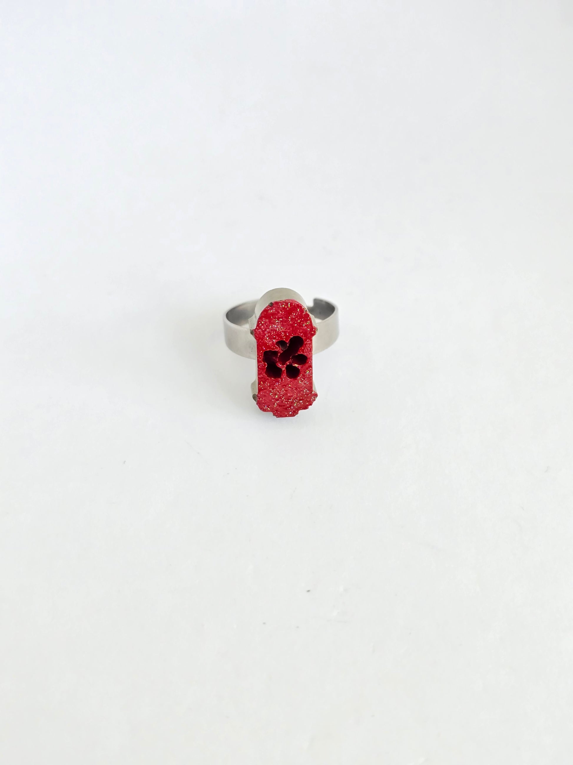 Sortija ajustable en acero inoxidable con una garita en cemento pintada a mano, símbolo icónico de Puerto Rico. Una pieza que celebra nuestras raíces con orgullo y estilo, llevando un pedacito de la isla contigo donde vayas.