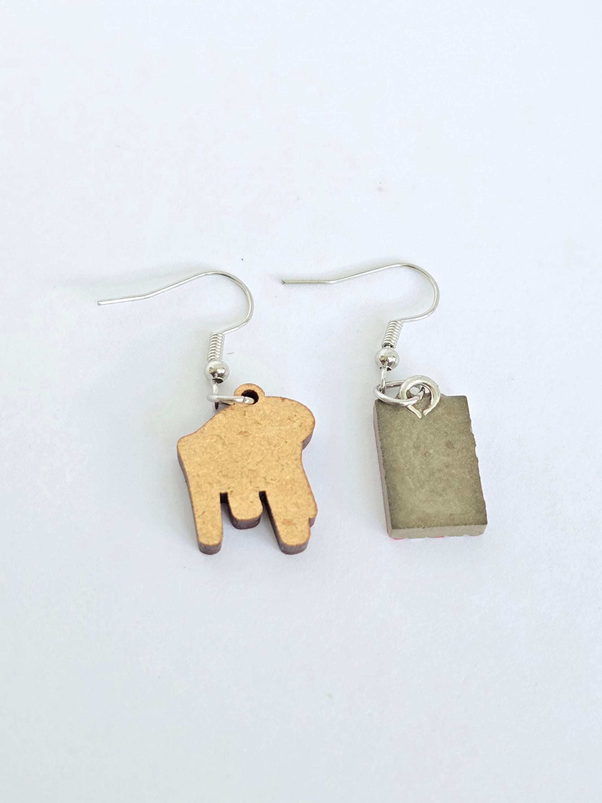 Estas pantallas colgantes son desiguales y llenas de significado. De un lado, una silla hecha en madera inspirada en el icónico álbum de Bad Bunny; del otro, una bandera de Puerto Rico hecha en cemento y pintada a mano con detalle y amor patrio. Una combinación artística y atrevida que celebra la cultura, la música y la identidad boricua. Ligeras, únicas y con ganchos en acero inoxidable, ideales para pieles sensibles y para destacar tu estilo con fuerza.