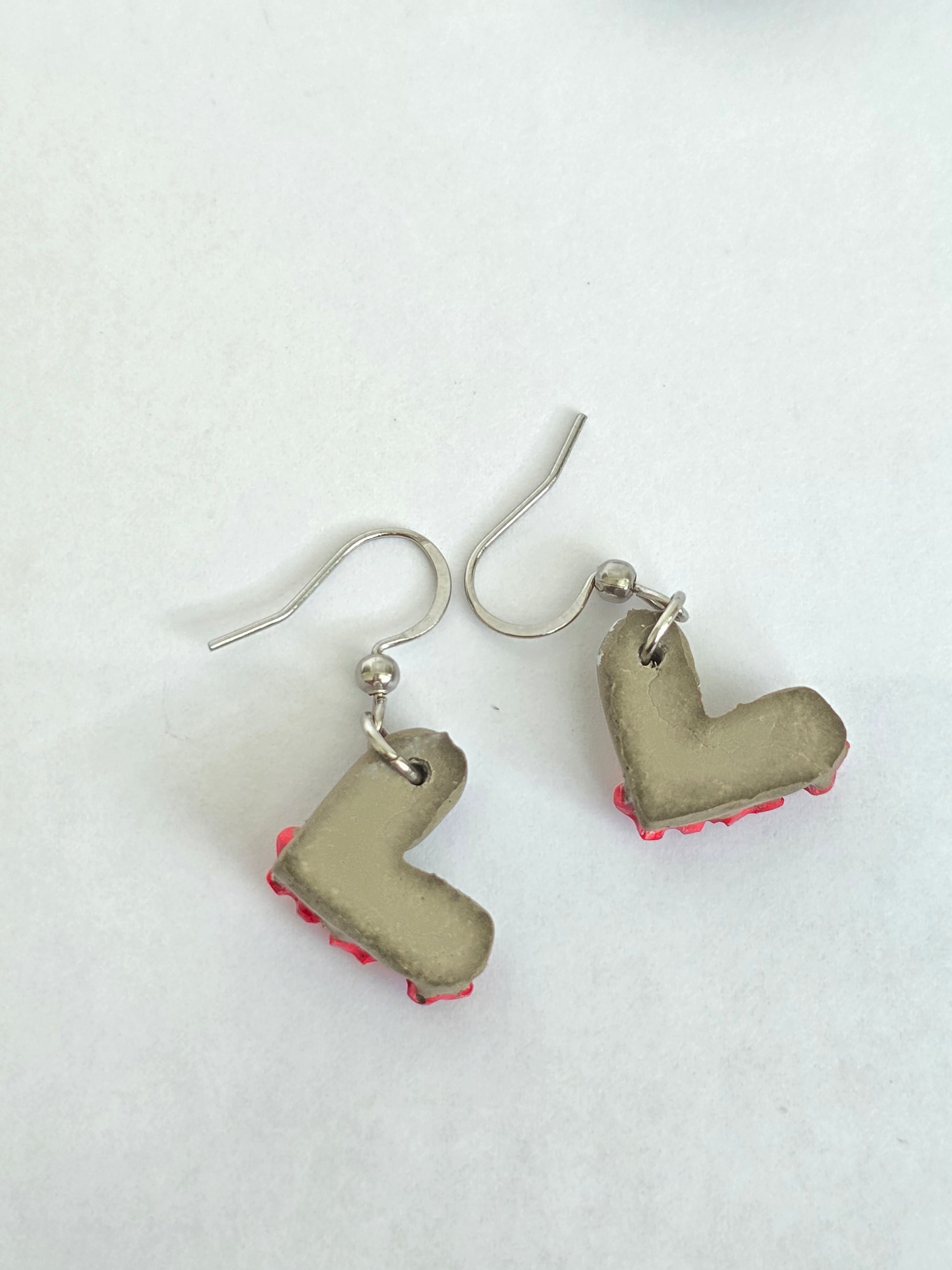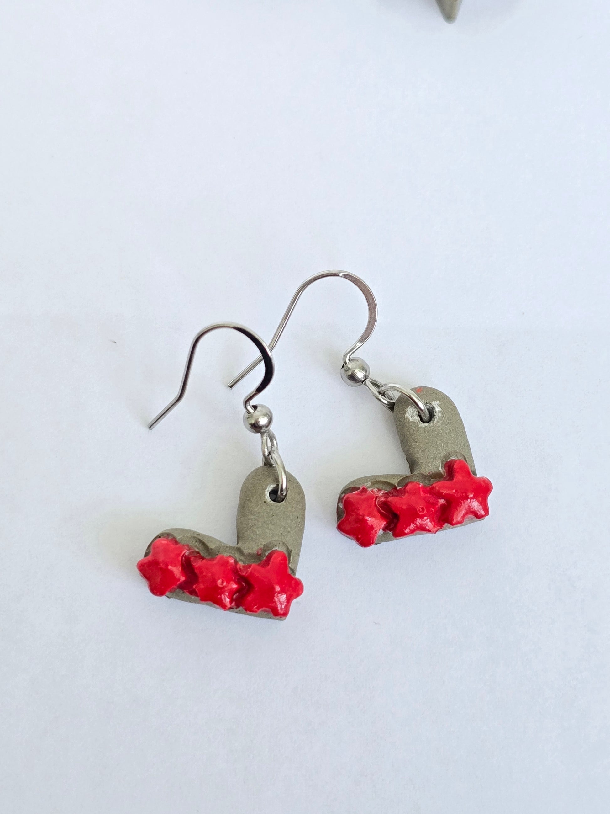 Estas pantallas colgantes presentan un mini corazón hecho en cemento, decorado con tres estrellitas rojas pintadas a mano que le añaden un detalle encantador y vibrante. Un diseño delicado pero lleno de carácter, ideal para quienes aman piezas pequeñas con gran significado. Ligeras, únicas y con ganchos en acero inoxidable, perfectas para pieles sensibles y para llevar un toque de amor y brillo todos los días.
