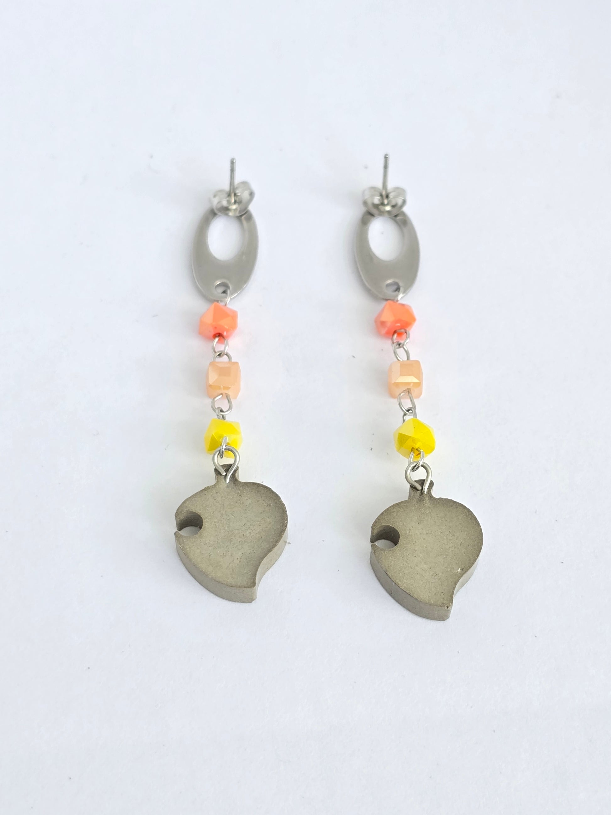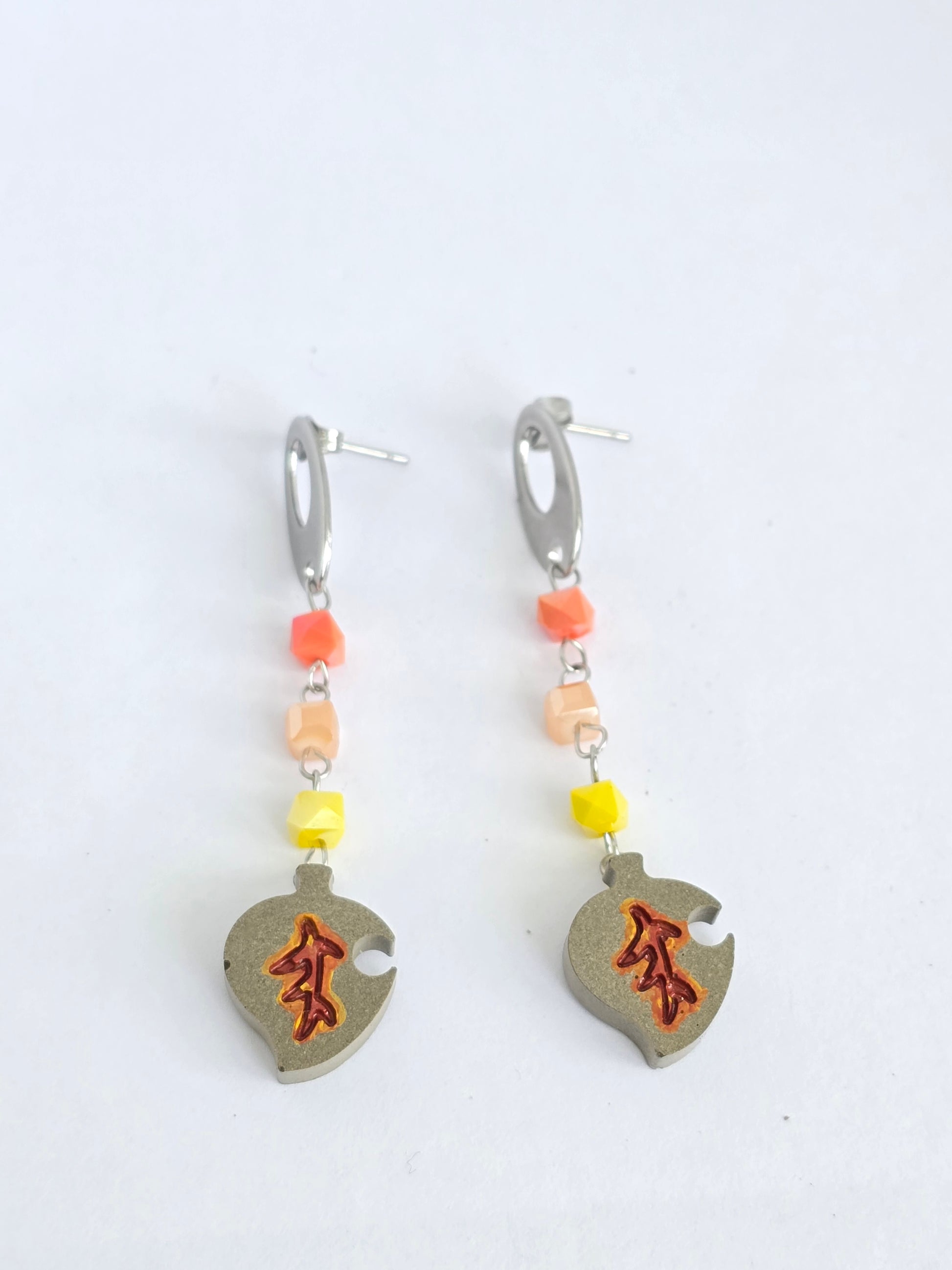 Estas pantallas capturan la esencia cálida del otoño con pequeñas piedritas en tonos tierra, que aportan un toque de color natural y elegante. Complementan el diseño un charm en forma de hoja hecho en cemento al natural, resaltando la conexión con la naturaleza. Cuelgan de ganchos en acero inoxidable, ofreciendo comodidad y resistencia para el uso diario. Un accesorio artesanal perfecto para quienes aman la temporada y el estilo orgánico.