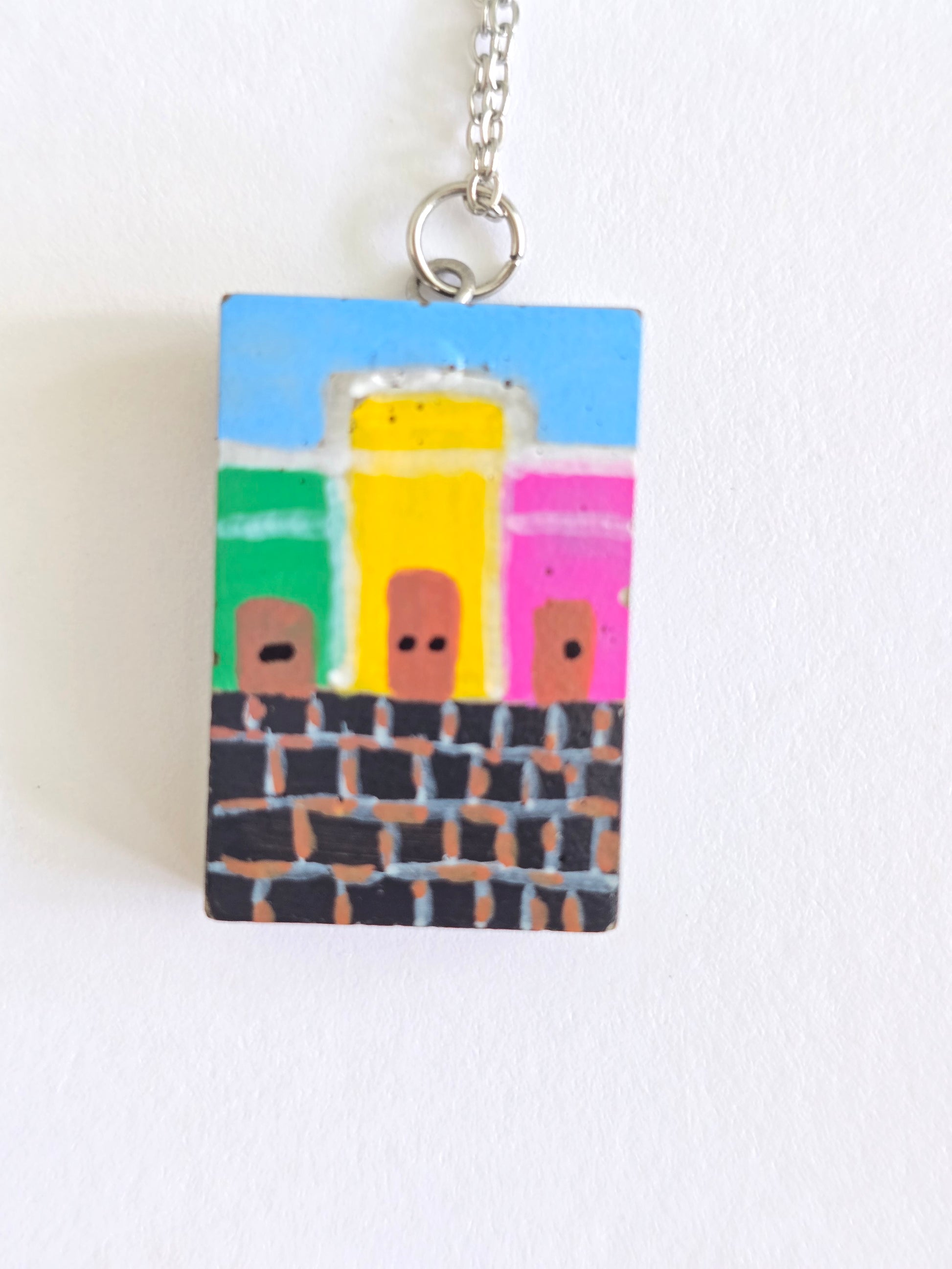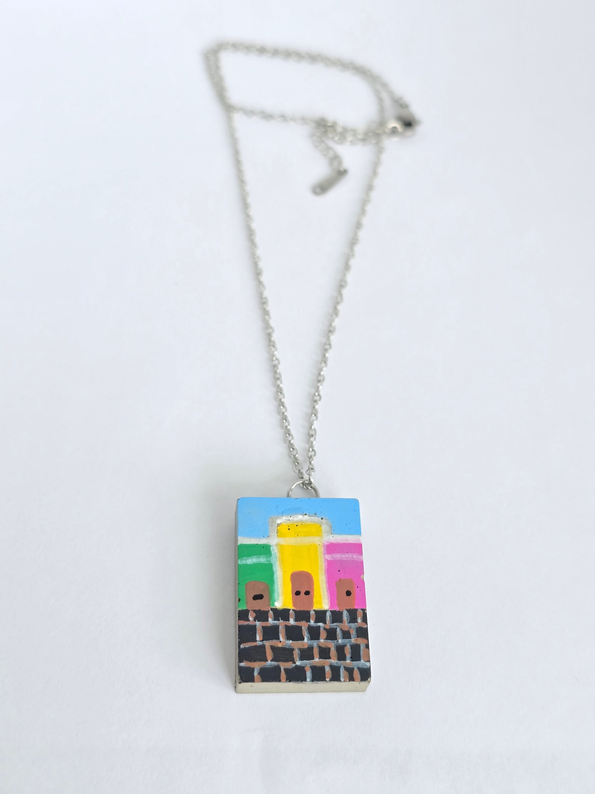 Este collar con el charm cuadrado está pintado para representar el viejo San Juan con las casas de colores el cual representa tiene cadena de acero inoxidableEste collar con el charm cuadrado es una hermosa pieza de joyería. Su diseño pintado representa el encanto del viejo San Juan, con sus vibrantes casas de colores. Cada detalle refleja la rica historia y la cultura de ese lugar especial. Es una manera elegante de llevar contigo un pedacito de ese destino. Sin duda, este collar es un accesorio muy especial.